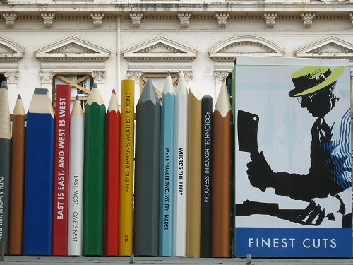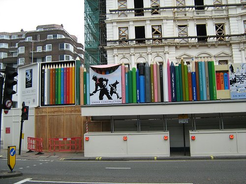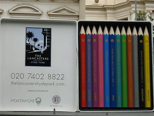 Reklama budowanego właśnie nowego kompleksu mieszkalnego: The Lancasters Hyde Park. Wokół budowy utworzony został „płot” z 1,5-metrowych kredek (drewnianych i świecowych, w pudełkach i stojących samodzielnie), pędzli i flamastrów. Na wszystkich elementach konstrukcji wypisane były różne hasła nawiązujące do powstającego budynku (np. „Good things come to those who wait”, „East, west, home’s best”, „Progress through technology” etc. ).