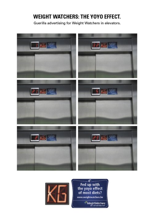 Jak widać, w przypadku wind można wykorzystywać nie tylko drzwi. Fantastyczna kampania dot. efektu yo-yo, z którym ma do czynienia większość osób próbujących zrzucić wagę.