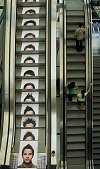 Parę dni temu pisałam o kreatywnym wykorzystywaniu wind i ruchomych schodów. No i proszę – trafiłam właśnie na fantastyczny przykład takiego działania. W ramach prowadzonej obecnie kampanii salonu fryzjerskiego Juice Salon, u podstawy ruchomych schodów umieszczona została połowa głowy młodego mężczyzny, podczas gdy druga (zmultiplikowana) znalazła się na poszczególnych stopniach. W trakcie jazdy w dół widzimy więc, jak w ciągu kilkunastu sekund ten sam facet kilkanaście razy zmienia fryzurę. Najlepiej widać to oczywiście na filmie (poniżej).