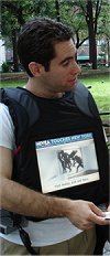 Korzystając z okazji – tym, którzy poszukują nowych rozwiązań, a jednocześnie nie mogą obejść się bez telewizji – polecam reklamę w telewizorach wbudowanych w… T-shirty 🙂 (na zdjęciu poniżej).