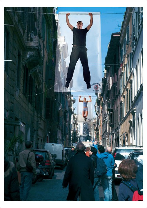 Zamieszczam dziś przykład realizacji ambientowej, która – na pierwszy rzut oka – wydaje się bardzo ciekawa. Zrealizowała ją agencja Leo Burnett we Włoszech dla klubu sportowego (? – o tym, dlaczego stawiam znak zapytania, za moment) Sparring Partner Palestra. W realizacji wykorzystano – wiszące na wąskich włoskich uliczkach – sznury do prania. Zawieszono na nich tym razem przezroczyste folie, na których nadrukowane zostały zdjęcia osób podciągających się na drążkach. No i ok. Uwagę zwraca i miejsce, i kontekst, w jaki reklama do tego miejsca nawiązuje. Klasówka z ambientu – zdana na 5. Ale, jeśli przyjrzeć się tej realizacji bliżej, to nie spełnia ona podstawowych założeń komunikacji. Na reklamie, oprócz osoby podciągającej się na drążku i logotypu Sparring Partner Palestra – nie ma NIC. Ani adresu, ani telefonu, ani nawet (przede wszystkim?) strony WWW.
