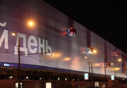 Moskwa. Budynek w pobliżu Kremla. Powierzchnia 6000m2. Layout – szosa, na niej – naturalnej wielkości samochody. Aby było bardziej realnie – światła mijania włączają się wieczorem. Oto najnowsza reklama BMW w Rosji pod hasłem: „BMW M Power. Być pierwszym każdego dnia.” Prawdopodobnie jedna z największych powierzchni reklamowych na świecie. Z pewnością – jedna z najlepiej wykorzystanych. Niewiarygodne, a jednak prawdziwe. Zobaczcie sami.