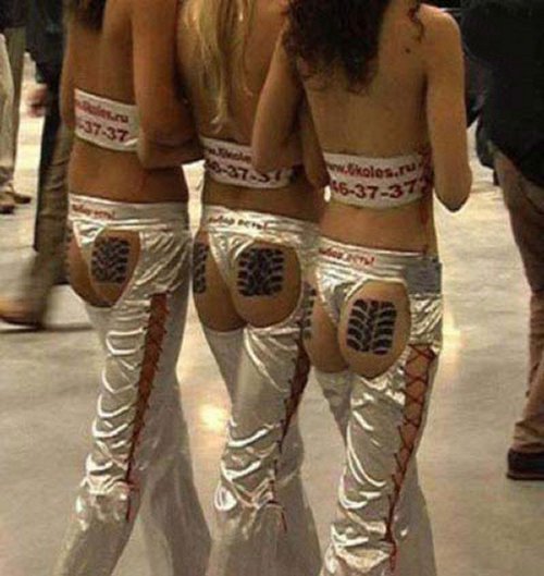 Oczywiście znajdzie się parę przykładów (zamieszczam poniżej) użycia tego „nośnika”. Wykorzystywały go zresztą także duże marki, m.in. Kodak i Heyah. Ale żeby na masową skalę? Tak, by nośnik wszedł do „mainstreamu”, jak np. podkładki pod piwo? Hmm.. Raczej nie… Czyżby więc pośladki jako medium – mimo niewątpliwej zalety, jaką jest zwrócenie uwagi – nie były odpowiednie dla konkretnej marki? I mogły wpływać na nią destrukcyjnie?