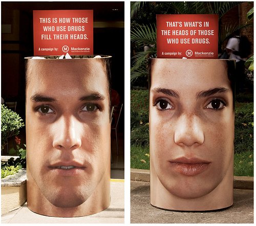 Copy: 1) Oto jak Ci, którzy biorą narkotyki, wypełniają swoje głowy. 2) Oto, co znajduje się w głowach tych, którzy biorą narkotyki.