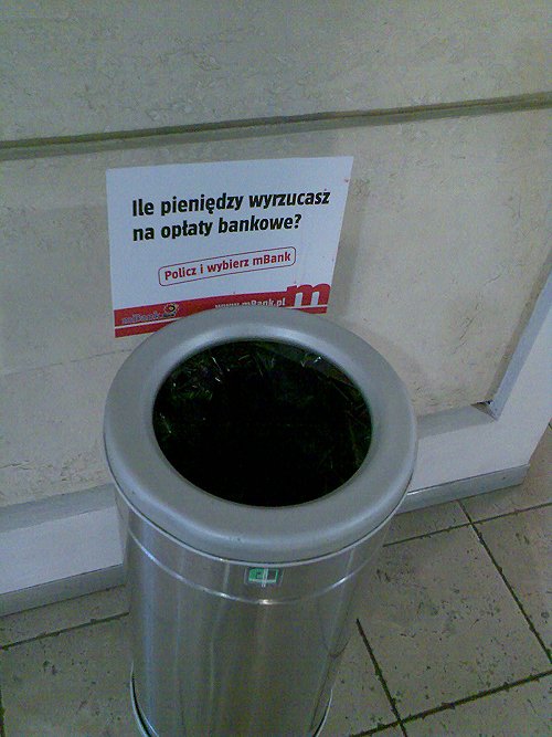 Nośnik pochodzący z trwającej właśnie kampanii mBanku, mającej zwrócić uwagę klientów na to, ile pieniędzy w innych bankach „tracą” na opłaty bankowe. Więcej informacji na temat samej kampanii na zjadamyreklamy i na blogu BM mBanku: zapiskibrandmanagera.