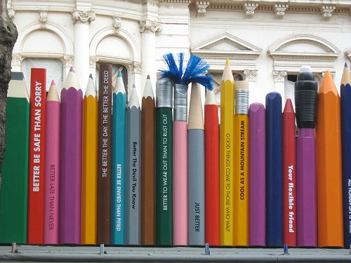 Reklama budowanego właśnie nowego kompleksu mieszkalnego: The Lancasters Hyde Park. Wokół budowy utworzony został „płot” z 1,5-metrowych kredek (drewnianych i świecowych, w pudełkach i stojących samodzielnie), pędzli i flamastrów. Na wszystkich elementach konstrukcji wypisane były różne hasła nawiązujące do powstającego budynku (np. „Good things come to those who wait”, „East, west, home’s best”, „Progress through technology” etc. ).