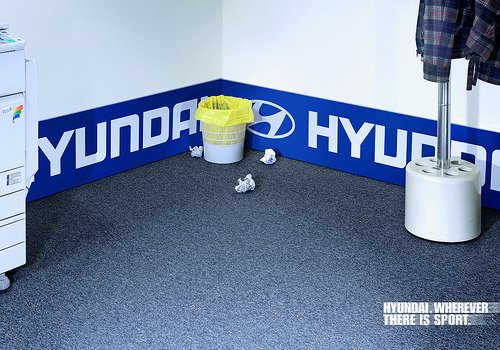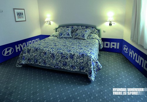 Hyundai bardzo mocno angażuje się w sponsoring sportowy. Nic zresztą dziwnego. Sport=emocje. A najsilniejsze emocje wywołuje oczywiście… piłka nożna (pamiętacie Wojnę futbolową Kapuścińskiego?). Od 1999 Hyundai jest więc oficjalnym partnerem FIFA. A ponieważ sponsoring rozgrywek futbolowych jest kluczowym elementem strategii marketingowej Hyundaia, umowa ta została podpisana aż na 14 lat. W tym kontekście może więc trochę dziwić (choć nie ukrywam, że pozytywnie :)) uruchomiona właśnie w Europie kampania prasowa pod hasłem: „Hyundai. Wherever there is sport.” Tym razem, ten samochodowy potentat występuje jako sponsor takich „dziedzin” sportowych, jak… „maraton łóżkowy”, „rzut śmieciem do kosza” czy „sikanie na odległość”. Layouty zamieszczam poniżej i stawiam duży plus za poczucie humoru oraz dystans do marki :).