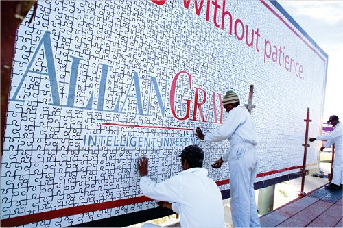 Doradcy finansowi zawsze tłumaczą tym, którzy inwestują w akcje, że najważniejsza jest cierpliwość. To szczególnie ważne, gdy giełda leci na łeb i szyję. Ludzie zaczynają w panice wycofywać środki i kryzys jeszcze bardziej się pogłębia. Podczas nie tak dawnych „czarnych wtorków” i „czwartków” nie zauważyłam jednak wzmożonych działań marketingowych funduszy inwestycyjnych (obecnie na mieście widoczna jest jedynie kampania Legg Masona – layouty, dla przypomnienia, zamieszczam poniżej) – doradcy najwidoczniej „gasili pożary” w ramach tzw. działań bezpośrednich. To w Polsce. A w Afryce – fundusz Allan Gray Investments prowadzi właśnie kampanię pod hasłem „Cel jest niczym bez cierpliwości”. W ramach tej kampanii jeden billboard budowano przez cztery tygodnie z… 6 000 kawałków puzzli.