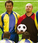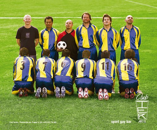 No i proszę. Czesi pobili nasze pulpety w jednym słoiku! Reklamą klubu Termix w Pradze. Dodam, sportowego klubu dla gejów. Podobieństwo, trzeba przyznać, uderzające. Tak jak w reklamie Pamapolu mamy piłkarski mur. Ale piłkarze tym razem nie trzymają się za przyrodzenie. Hm. No cóż. Nie muszą. Przed nimi klęczą inni piłkarze (ach, jaka szkoda, że nie z przeciwnej drużyny). I tylko martwi mnie pewna niekonsekwencja. No bo ci stojący panowie mają błogość na twarzach, ale… spodnie na miejscu. Czy w takiej sytuacji prawdziwa rozkosz jest możliwa?