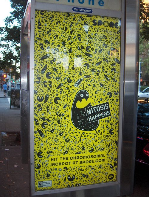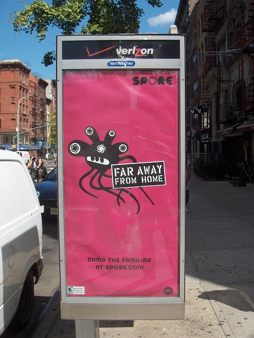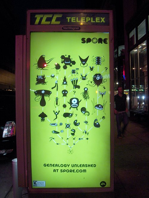 „Łażąc” dzisiaj po sieci, trafiłam na zdjęcia z kampanii Spore w Nowym Jorku. I musiałam je tu zamieścić, bo uważam, że to ABSOLUTNIE fantastyczne wykorzystanie outdooru. Naprawdę rzadko kiedy spotyka się TYLE wersji layoutów (po pierwsze ogromne przedsięwzięcie kreacyjno-produkcyjno-logistyczne, po drugie – kapitalne nawiązanie do samej gry: tyle layoutów, ile stworów :)). I hasła jakie super. Naprawdę. Spore się zrehabilitował :).