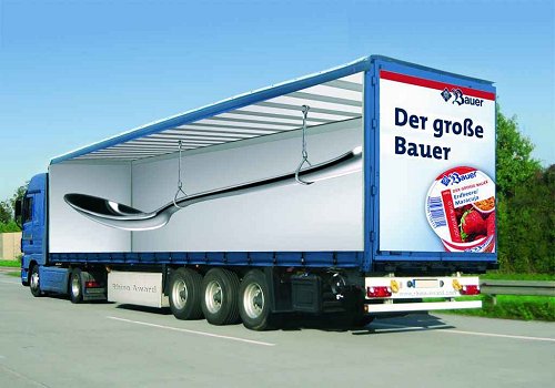 System RollAd (polegający na umieszczeniu na ciężarówce specjalnych ramek, które umożliwiają szybką wymianę reklamy bez konieczności produkowania specjalnych wielkoformatowych naklejek) obniżył koszty produkcji o 20%. W 2005 r. trans-marketing GmbH (we współpracy z kilkoma graczami z branży reklamowej) wprowadził nagrodę RhinoAward. Jak mówi Marco Stenger z firmy trans-marketing GmbH obecnie RhinoAward jest największą przyznawaną na świecie nagrodą w kategorii „truck advertising”.