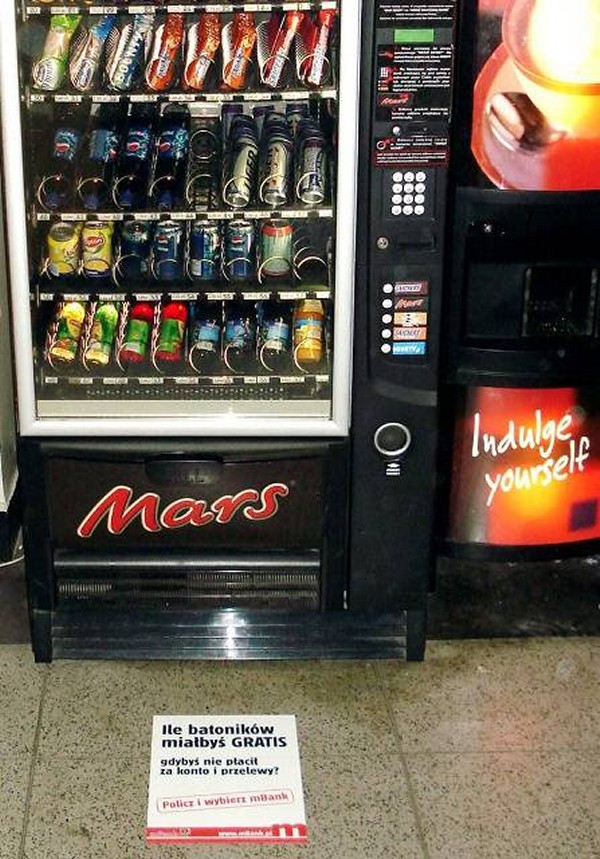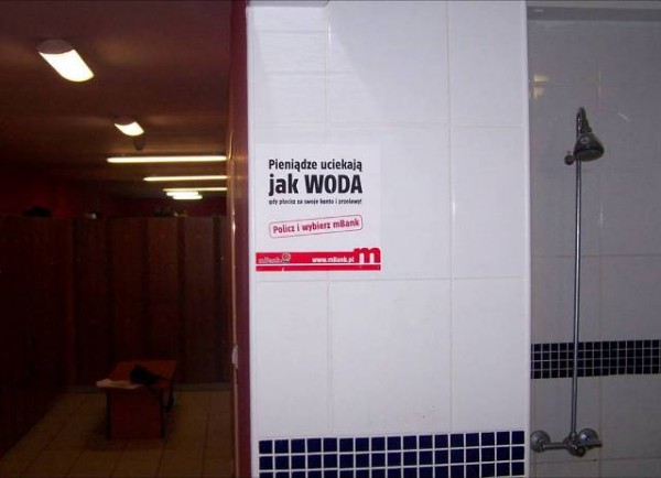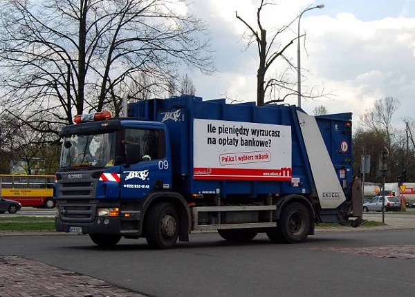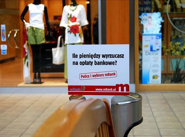 Placing ads on the trash bins is pretty popular among social organizations. Commercial companies don’t use it very often – probably because of the risky context. But in 2008 in Poland mBank (first electronic bank in Poland, part of the BRE Bank Group) ran a very successful campaign using bins and dustcarts as a medium. I say successful because 52,5% respondents said that campaign was standing out of the other banks campaigns and almost 80% said that it can inspire somebody to change their bank for mBank. The campaign was based on a concept of wasting money. Apart from the trash bins and dustcarts mBank used also other ambient media. See examples and results of the campaign below.