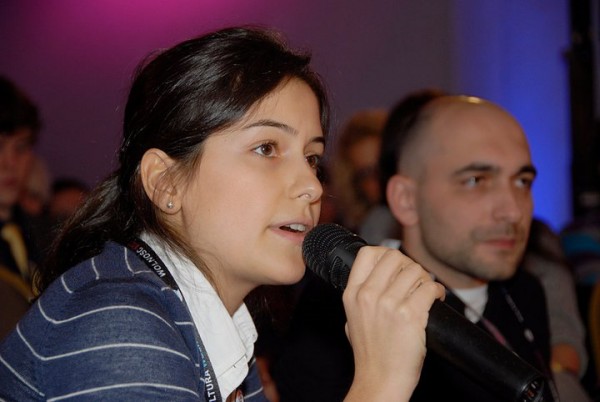 Na zdjęciu: Arzu Geybullayeva, w tle – Kominek. Fot.: Blog Forum Gdańsk