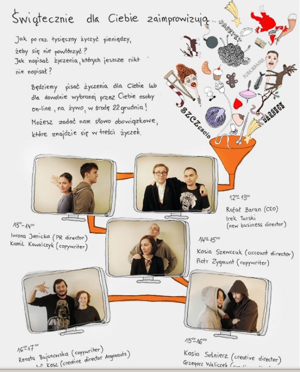To się nazywa użyteczność! 🙂 Dwa dni przed świętami, na profilu Grey Group można było złożyć zamówienie na życzenia świąteczne dla wybranej osoby. Zamówienia realizowali m.in. Rafał Baran (CEO Greya), Iwona Janicka (PR Director), a także Krzysztof Kosz, Kasia Sośnierz i Grzegorz Waliczek (Creative Directorzy). 22 grudnia w ciągu pięciu godzin członkowie zarządu, kreatywni, copywriterzy oraz accounci napisali w sumie 315 spersonalizowanych życzeń i wygenerowali tyle samo kartek dźwiękowych, co dało ponad 1 życzenie na minutę :).