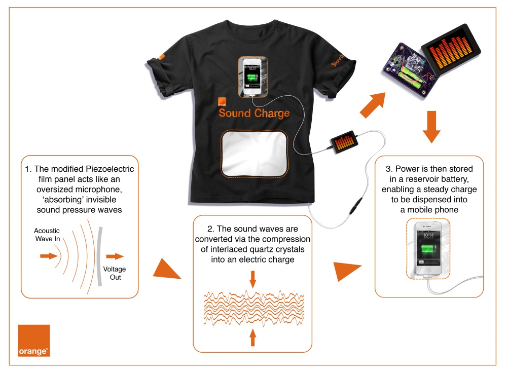 2. charging everywhere – strach przed rozładowaniem się baterii w telefonie spowodował, że na rynku pojawiają się rzeczy (ubrania, meble etc.), które umożliwiają naładowanie telefonu niezależnie od miejsca, w którym akurat się znajdujemy i niezależnie od gniazdka elektrycznego (np. akcja Orange na ubiegłorocznym festiwalu Glastonbury – można było tam naładować swój telefon, wkładając go do specjalnej koszulki, która przetwarzała w prąd… dźwięki muzyki).