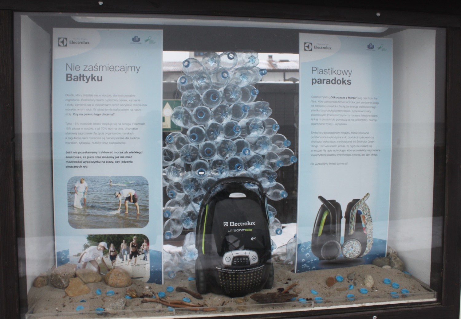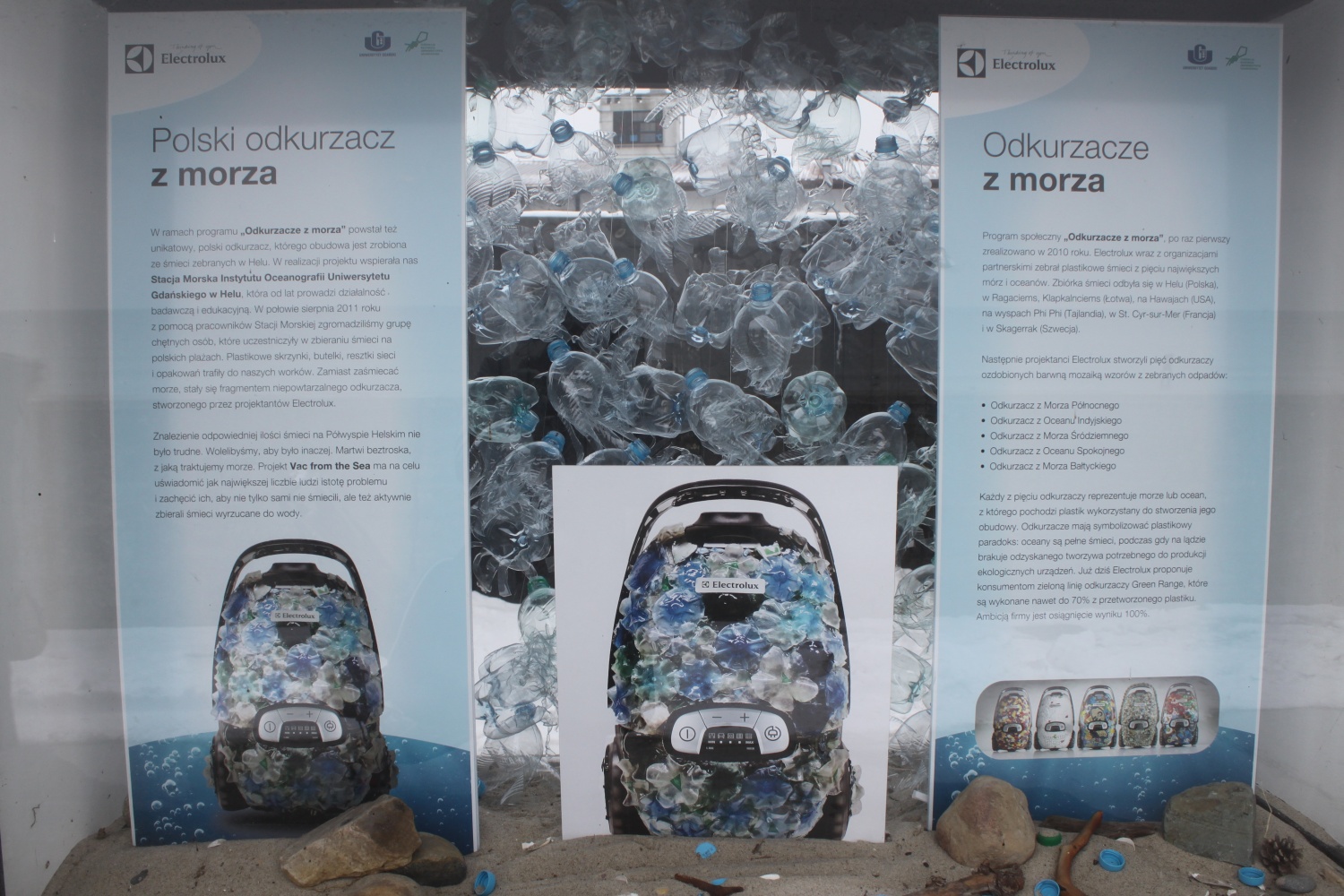 W ramach akcji, Electrolux wraz z organizacjami partnerskimi zebrał najpierw śmieci z pięciu największych mórz i oceanów, a następnie stworzył pięć różnych odkurzaczy ozdobionych zebranymi odpadami. Zbiórka śmieci odbyła się także w Helu. I w Helu właśnie, w fokarium, można dziś zobaczyć odkurzacz zbudowany z polskich śmieci. Poniżej zdjęcia, które zrobiłam.