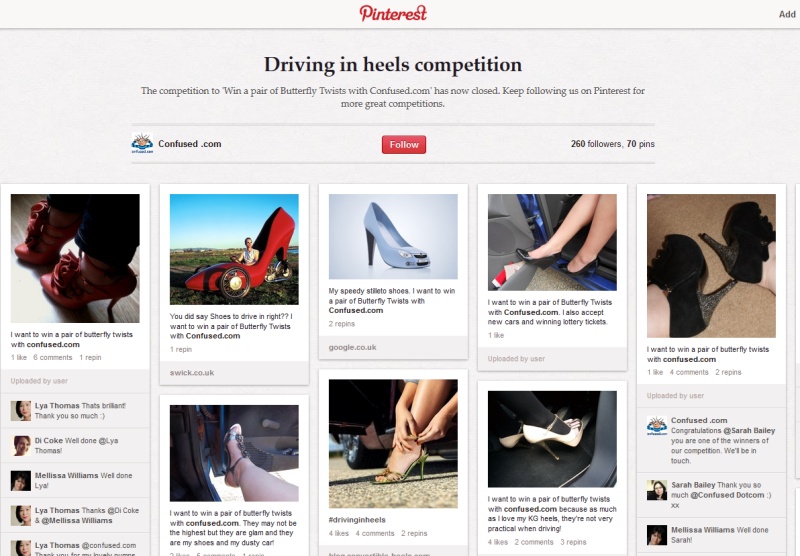 Akcja (społeczna?) zrealizowana przez porównywarkę ubezpieczeń. Miała za zadanie promować bezpieczną jazdę wśród kobiet. W związku z tym zorganizowano konkurs, w którym kobiety wrzucały na Pinterest zdjęcia najbardziej ekstrawaganckich butów, w jakich kiedykolwiek prowadziły samochód. W ramach kampanii powstała tez infografika pokazująca, jak kobiety i mężczyźni różnią się w prowadzeniu samochodu.