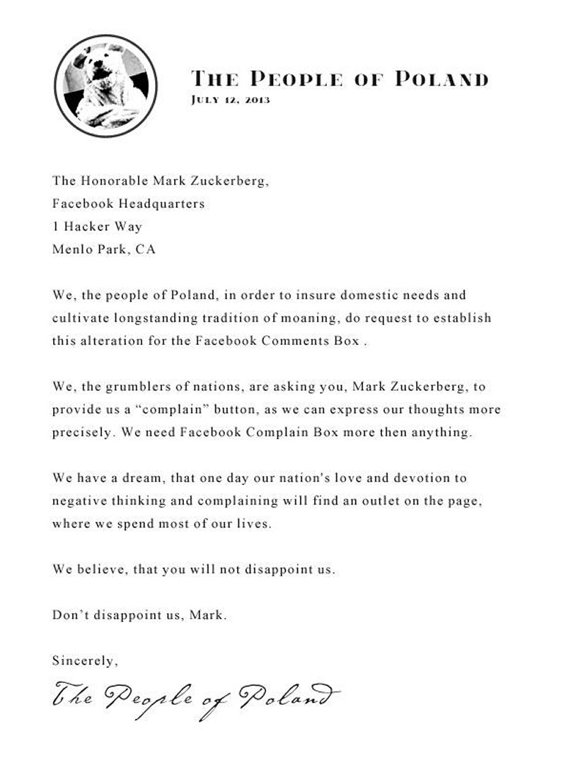 Petycja do Marka Zuckerberga o przyznanie complain button.